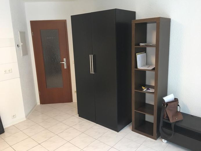 Zu vermieten ist eine Einzimmerwohnung mit einer kleinen Küchenzeile.