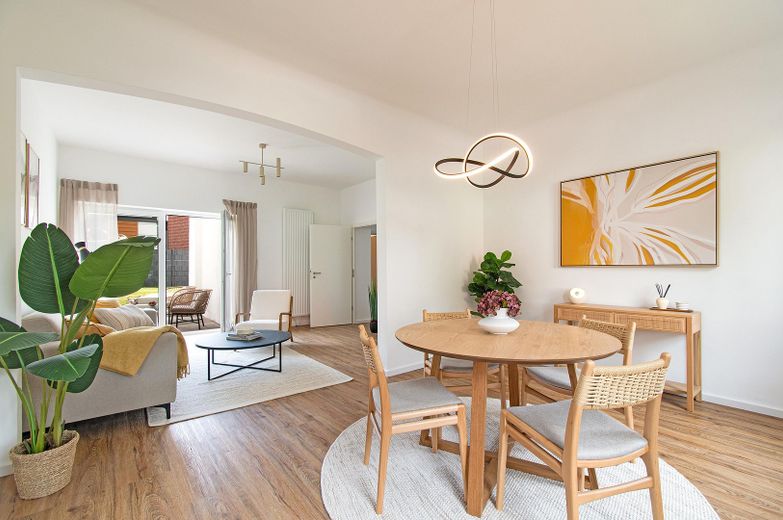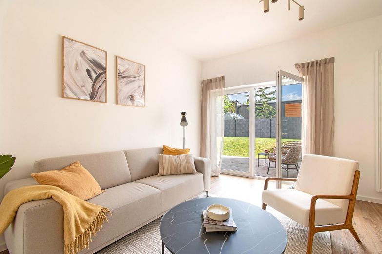 Sonnige Tage genießen Sie auf der einladenden Südwest-Terrasse mit dem anschließenden kleinen, aber feinen Garten, welchen Sie nach Ihrem Gusto gestalten können.