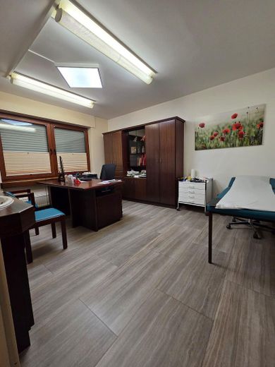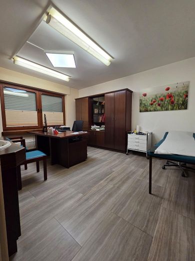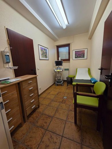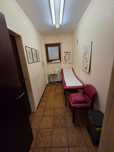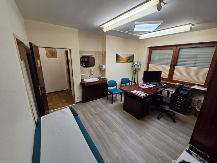 Bei diesem Objekt handelt es sich um eine gemischt genutzte Immobilie mit einer von dem Vermieter selbstgenutzten Wohnung im Obergeschoß. Hier angebotene Praxis befindet sich im Erdgeschoß. Zu den Praxisräumen führt ein separater, barrierefreier Eingang. Dieses Angebot umfasst die Praxisflächen im Erdgeschoß des Gebäudes außerdem noch zwei Lagerräume im Keller.