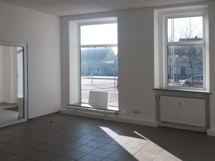 Das Ladenlokal verfügt über ein großes Schaufenster und der Fußboden ist gefliest.