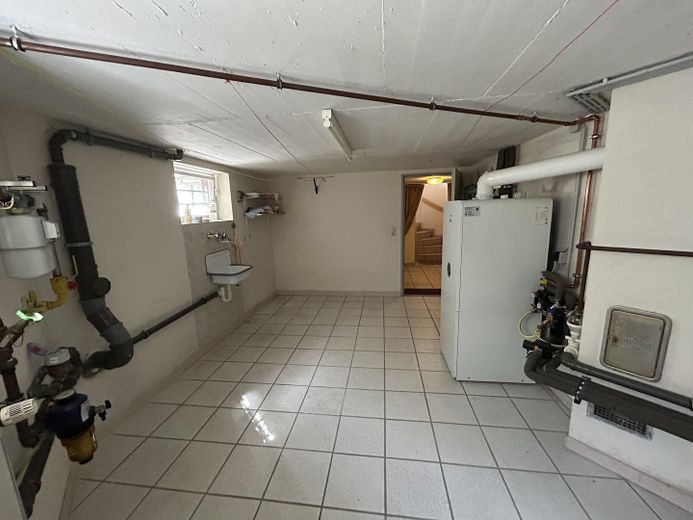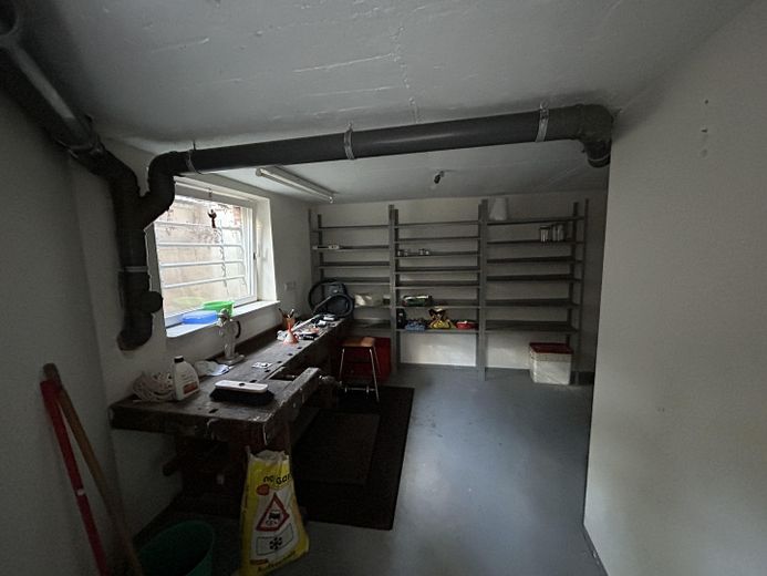 Das Haus ist teilunterkellert (ca. 63 m²) und verfügt über einen Technik- und Waschraum, Werkstatt, Mehrzweckraum, Speisekammer sowie einen separaten Außenzugang.