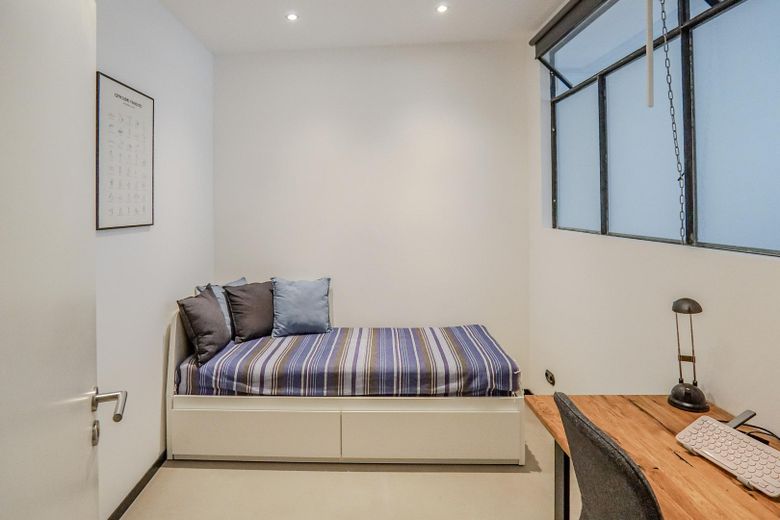 Der sonnige Südbalkon lädt zum Entspannen ein – ob zum Frühstück oder zum Feierabenddrink. Zusätzlich steht eine kleine, separate Dachterrasse zur Verfügung.