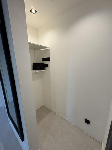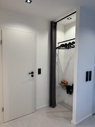 • Ankleidezimmer: offener Kleiderschrank, zwei Schuhschränke, maßgefertigte Möblierung, Licht mit Touch-Dimmer