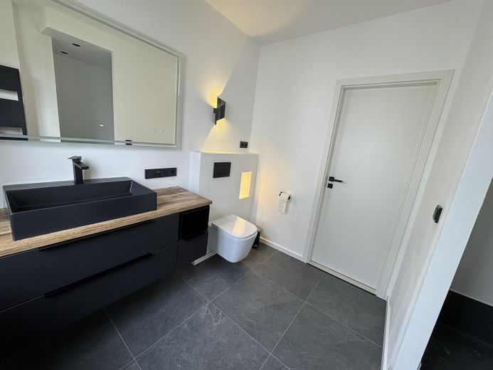 • Bad: Waschtisch mit Vergrößerungsspiegel, Spiegel, digitales Einbauradio