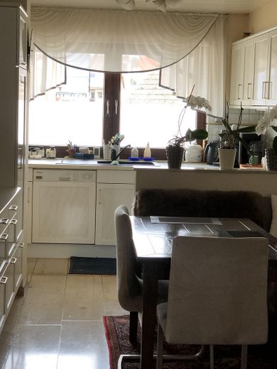 Wir haben diese Wohnung 1992 erworben und komplett renoviert und modernisiert. Sie besteht aus 4,5 - 5 sehr hellen Räumen. Im 1.OG. finden Sie die Küche mit Zugang zum Hauswirtschaftsraum und anschließender Speisekammer, mit Fenster. An die Küche grenzt der großzügige Galerieraum mit dem Essplatz, sowie der Zugang der einladenden überdachten Süd/West Terrasse.Nach Öffnung der Doppelflügel-Türe befinden Sie sich in dem lichtdurchfluteten Wohnzimmer mit Heizkamin. Von der Galerie aus kommen Sie über eine 1/4 gewendete Holztreppe in das 2.OG. dort finden wir das sehr große Schlafzimmer mit begehbarem Schrank, das das Badezimmer mit Fenster und Erker, Toilette und die beiden Kinderzimmer. Durch eine Auszugstreppe wird der Bühnenraum, der sich über die gesamte Hausbreite erstreckt, erreicht. Die Wohnung sowie das Haus wurden laufend renoviert . 2018 ist die Heizungsanlage auf Flüssiggas umgerüstet worden. Im Untergeschoss befindet sich der vielseitig nutzbare Kellerraum . Zu dieser Wohneinheit ist die Doppelgarage mit der dazugehörigen großzügigen Einfahrt , die nur von dem jeweiligen Eigentümer genutzt werden darf, zugeordnet. Durch eine Änderung des Garagentores wäre die Unterbringung eines Wohnmobiles in der Garage möglich.