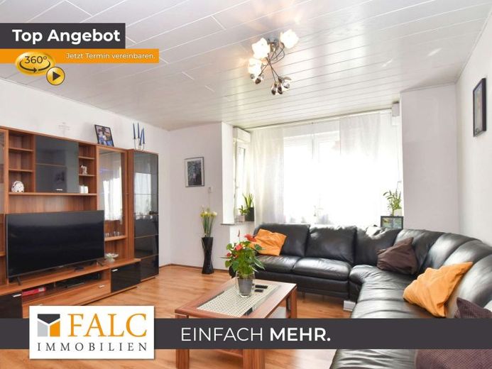 Im komfortablen Wohnzimmer lassen große Fenster viel Tageslicht herein und schaffen eine freundliche Atmosphäre. Genügend Platz für eine gemütliche Sofalandschaft und einen Essbereich macht diesen Raum perfekt für gemeinsame Abende mit der Familie.