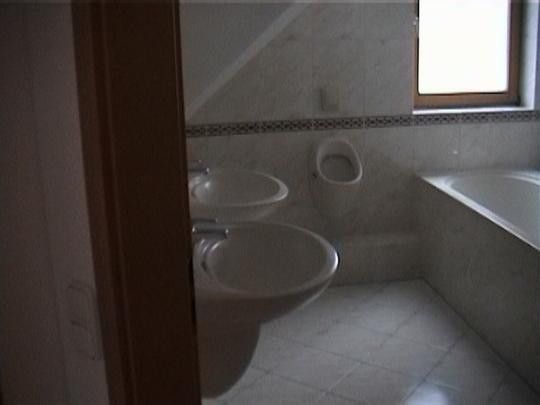 Im unteren Bereich befindet sich der hochwertig ausgestattete Wohntrakt mit Parkettboden und Fußbodenheizung. Die Einbauküche mit Granitboden sowie die insgesamt 2½ exklusiv gestalteten Bäder (darunter ein Vollbad mit Badewanne, separater Dusche und Bidet) bieten hohen Komfort.