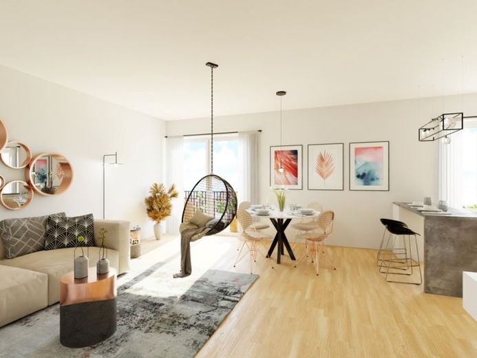 Die geräumige 3-Zimmer-Wohnung im 1. Obergeschoss bietet ein lichtdurchflutetes Wohnzimmer mit offenem Küchenkonzept für gemütliches Beisammensein mit der Familie. Das Tageslichtbad ist mit einer Wanne ausgestattet (optional Dusche) und lädt zum Relaxen ein. Zwei gut geschnittene Schlafzimmer lassen Ihren persönlichen Wünschen freien Lauf.