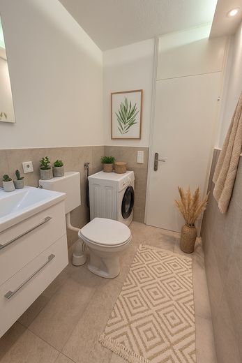 * Komplett neues, modernes Bad/WC mit ebenerdiger Dusche und hochwertigen Fliesen, inklusive neuer Waschmaschine.