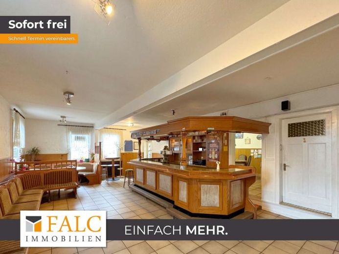 Besonders hervorzuheben ist die klare Trennung von großzügigem Erdgeschoss (Gaststätte) und dem vollwertig ausgebauten Obergeschoss mit separater Wohnfläche.