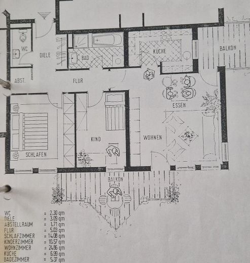 Balkonfläche: insgesamt ca. 18,6 m² (Süd & Ost)