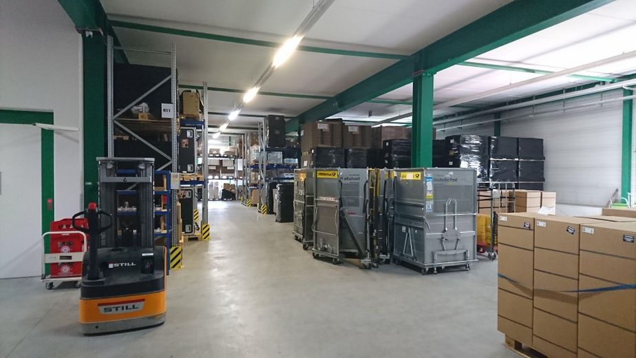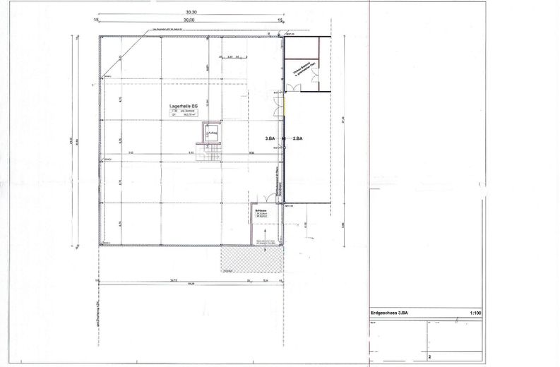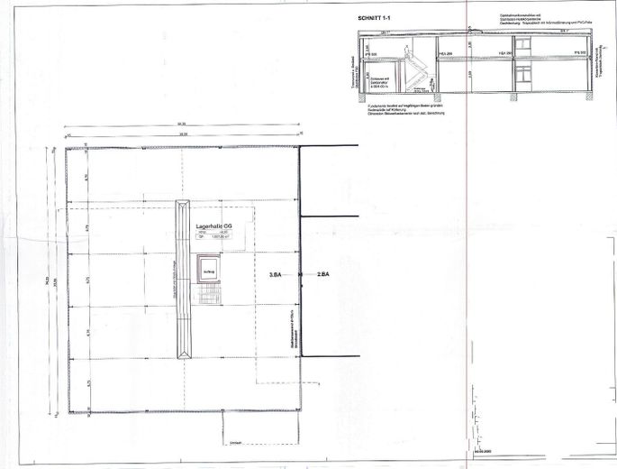 2- geschossig mit je ca. 1000 m². Raumhöhe EG min. 4,00m, OG min. 2,75m. Lastenaufzug mit 3 t vorhanden. Sehr gute Beleuchtung, mit Fenstern, im OG grosse Lichtkuppel im Dach.