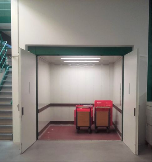 Die Halle verfügt über ein 4 Meter hohes und 3 Meter breites Rolltor, mit nach innen gebauter Schleuse mit Schnell-Lauftor. So verfügen sie über eine gute und barrierefreie Andienung. Mit dem Lastenaufzug, der über eine Tragkraft von 3 Tonnen verfügt, können sie problemlos ihre Waren in das rund 1.000 m² große Obergeschoss transportieren, welches über eine Deckenhöhe von 2,6 Metern verfügt. Im Erdgeschoss der Gewerbehalle integriert ist ein kleines Büro, mit Platz für 2 Arbeitsplätze.