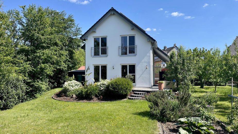 Dieses energieeffiziente Einfamilienhaus (Baujahr 2007) mit 117 m² Wohnfläche und 23m² Nutzfläche überzeugt durch seine moderne Ausstattung, durchdachte Raumaufteilung und ruhige aber zentrale Lage in einer Sackgasse. Es verfügt über 4 Zimmer, einen großzügigen Wohn-/Essbereich, eine Einbauküche, sowie einen gepflegten Garten – ideal für Familien oder Paare mit Platzbedarf. Über lediglich eine Stufe erreichen Sie den offenen Wohn-/Essbereich und die Küche. Zusätzlich im Erdgeschoss befinden sich das Gästebad, der Hauswirtschaftsraum und die Garderobe. Über die Treppe erreichen Sie die 3 Schlafzimmer und das Bad im Obergeschoss.