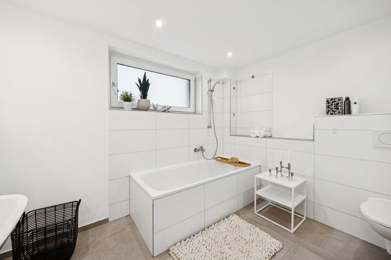 Die Haushälfte ist unterkellert und bildet zusammen mit dem ebenfalls 2025 hochwertig modernisierten Nachbargebäude ein gehobenes Wohnensemble auf einem rund 900m² großen Grundstück in einer verkehrsberuhigten Zone.