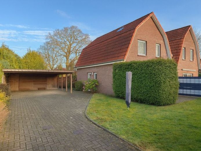 Der gepflegte Garten mit Terrasse bietet Raum zur Erholung, während der Carport für komfortables Parken sorgen.