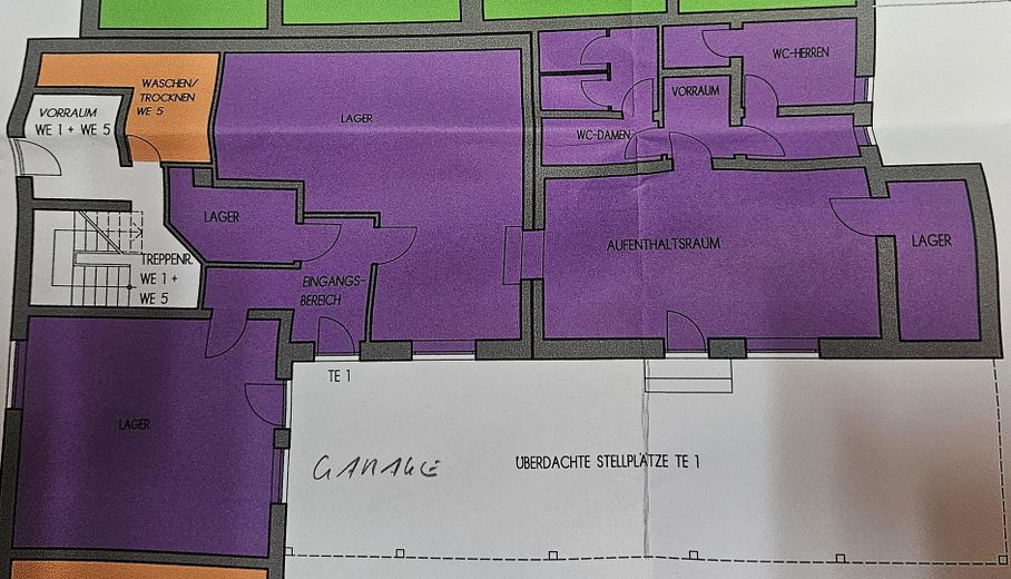 Zu verkaufen steht ein Teilegentum mit 134 m² (Lila eingefärbt auf Plan) Fläche und ca 30 m² Garage und Lärchenholz Fasade mit Elektrischen Sektionaltor. Ausrichtung nach Süd-West. Teilungserklärung und Wohnflächenberechnung sind vorhanden. Es ist ideal für Kleingewerbe Hobby oder Wohnungsumbau nach eigenen Wünschen. Heizung und Warmwasser kann mit Zentral Gasheizung vom Haus versorgt werden. Derzeit wird es mit Holz geheitzt. Man kann aber auch eine Eigene Heizanlage einbauen (Kamin Vorhanden) und sich selbst Versorgen was erhebliche Kosten auf lange sicht einspart. WC mit Vorraum vorhanden was man auch als Bad umbauen kann. Es Wird derzeit als Büro und lager genutzt.