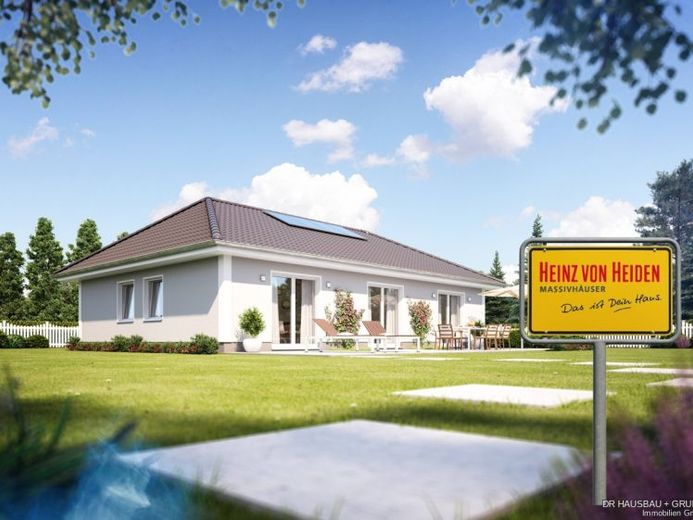 Elegant und zeitlos schön. Dieser klassische Bungalow mit 110 m² bietet einen offenen Wohn- und Essbereich, ein Schlaf- und 2 Kinderzimmer. Zusätzlich zum Badezimmer gibt es ein separates Gäste-WC. Unsere Häuser sind massiv gebaut, mit modernster Technik ausgestattet und bestehen aus hochwertigen Materialen. Verraten Sie uns Ihre Wünsche fürs Haus - Wir erfüllen Ihren Traum! Die Abbildung zeigt eine Ausstattungsvariante.