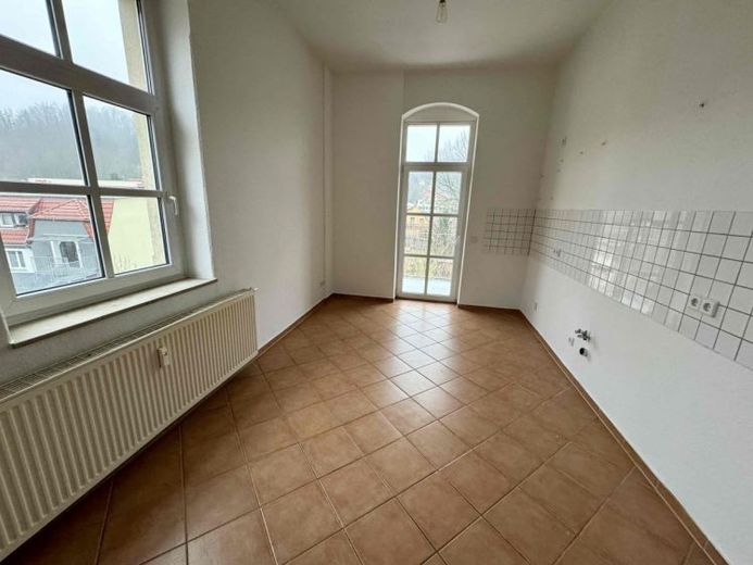 Zu vermieten ist eine gepflegte Zweiraumwohnung mit Küche, Bad und Balkon. Alle Zimmer sind vom Flur aus zu erreichen. Die Zimmer sind großzügig geschnitten so dass diese genug Stellmöglichkeiten für Möbel bieten. Der Fußboden der Räume ist mit Laminat ausgestattet und die Wände und Decken weiß gestrichen. Die Küche verfügt über einen Fliesenspiegel, Bodenfliesen, einen Elektroherdanschluss und den Zugang zum Balkon. Der Balkon zeigt in Richtung Innenhof und ist groß genug um gemütlich zusammen zu sitzen. Das Highlight der Wohnung ist die Eckbadewanne im Badezimmer. Außerdem ist das Bad mit Waschbecken, Toilette, Waschmaschinenanschluss und Fenster ausgestattet und türhoch gefliest.