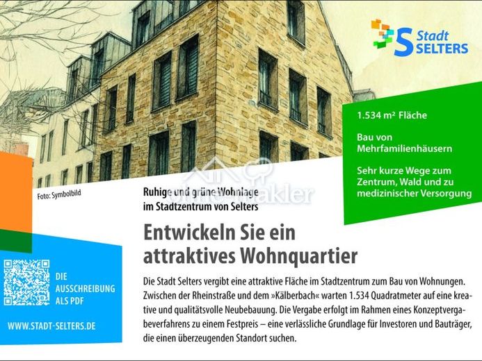 Die Stadt Selters vergibt eine attraktive Fläche im Stadtzentrum zum Bau von Wohnungen. Zwischen der Rheinstraße und dem "Kälberbach" warten 1.534 Quadratmeter auf eine kreative und qualitätsvolle Neubebauung. Die Vergabe erfolgt im Rahmen eines Konzeptvergabeverfahrens zu einem Festpreis - eine verlässliche Grundlage für Investoren und Bauträger, die einen überzeugenden Standort suchen.