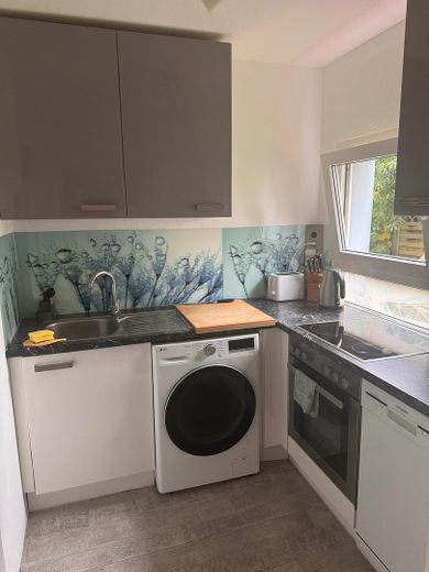 Ca. 42 m² Wohnfläche (ohne Terrasse, Garten)Großer Garten mit ca. 165 m² . Eigener Eingang zur Wohnung. Direktzugang zum privaten Keller aus dem Flur der Wohnung.