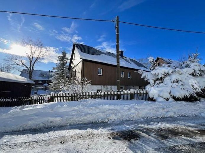 Das schöne Einfamilienwohnhaus bietet einer großen Familie genügend Platz - oder wäre aufgrund seiner Lage im Ski- Wander Gebiet auch hervorragend als Ferienimmobilie geeignet.<br/>Wir haben im Haus wie es im Erzgebirge üblich ist gemütlich Räume mit niedriger Deckenhöhe, Die Wohnfläche verteilt sich auf 2 Etagen und ist aber im neuen DG noch großzügig erweiterbar.<br/>Im EG ist Estrichfußboden vorhanden - welcher nach Belieben gestaltet werden kann, hier ist eine kleine Waschküche vorhanden und der Ausbau eines weitern Badezimmers - Gäste WC angefangen worden, es sind straßenseitig 2 Wohnräume vorhanden, von diesen aus gelangt man in den Heizungsraum mit einer stets gewarteten Öl-Heizung und 4Stk. - 720L Öltanks<br/>Im 1. OG befindet sich das Badezimmer mit Badewanne und die restlichen Wohnräume (3 Schlafzimmer, Wohnzimmer und Küche) diese Etage wurde für eine individuelle Renovierung vorbereitet. (Decken- Wände und Fußboden müssen eingebracht werden)<br/>Ein kleiner Garten mit Geräteschuppen und ein Gewölbekeller gehören ebenso wie die Garage in welcher Platz für ein Pkw ist mit zum Objekt.