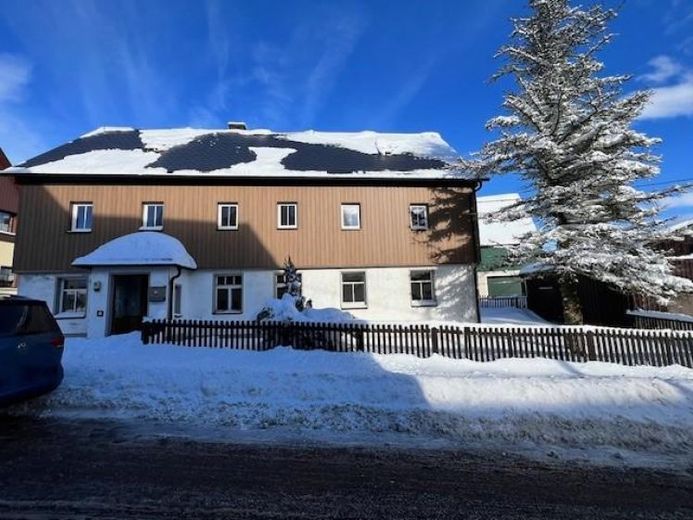 Das schöne Einfamilienwohnhaus bietet einer großen Familie ausreichend Platz- oder wäre aufgrund seiner Lage im Ski- und Erholungsgebiet auch hervorragend als Ferienimmobilie geeignet.<br/>Wir haben im Haus wie es im Erzgebirge üblich ist gemütlich Räume mit niedriger Deckenhöhe, Die Wohnfläche verteilt sich auf 2 Etagen und ist aber im neuen DG noch großzügig erweiterbar.<br/><br/>Im EG ist Estrichfußboden vorhanden - welcher nach Belieben gestaltet werden kann, hier ist eine kleine Waschküche vorhanden und der Ausbau eines weitern Badezimmers - Gäste WC angefangen worden, es sind straßenseitig 2 Wohnräume vorhanden, von diesen aus gelangt man in den Heizungsraum mit einer stets gewarteten Öl-Heizung und 4Stk. - 720L Öltanks<br/><br/>Im 1. OG befindet sich das Badezimmer mit Badewanne und die restlichen Wohnräume (3 Schlafzimmer, Wohnzimmer und Küche) diese Etage wurde für eine individuelle Renovierung vorbereitet. (Decken- Wände und Fußboden müssen eingebracht werden)<br/><br/>Ein kleiner Garten mit Geräteschuppen und ein Gewölbekeller gehören ebenso wie die Garage in welcher Platz für ein Pkw ist mit zum Objekt.