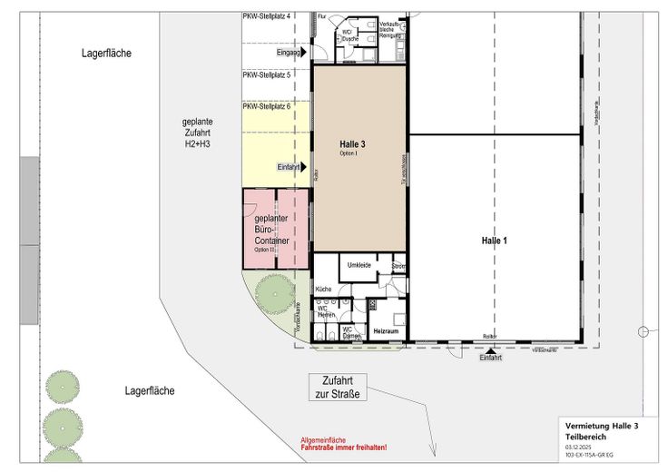 Zusätzlich können weitere Frei- und Stellflächen bei Bedarf zugemietet werden.