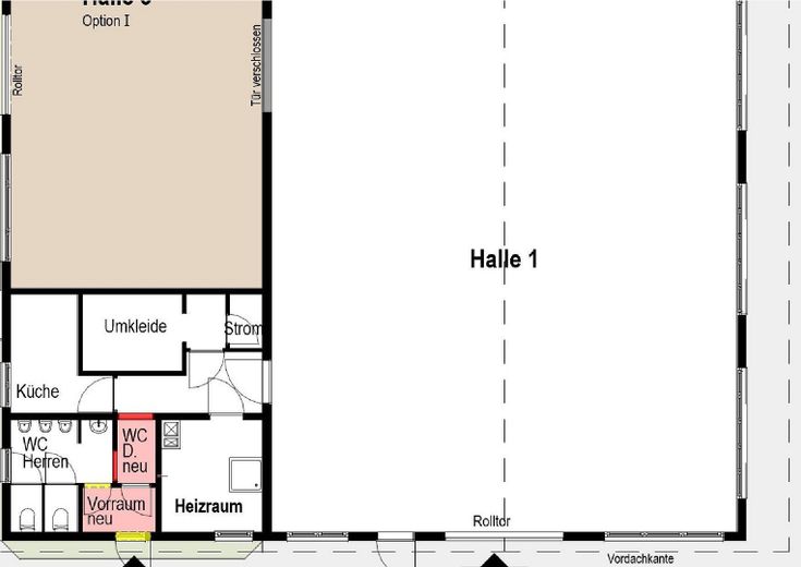 Die Halle verfügt über ein Rolltor und eine separate Toilettennutzung. Umbauten oder Anpassungen der Fläche sind nach Absprache möglich, sodass die Halle individuell an die Bedürfnisse des Mieters angepasst werden kann.