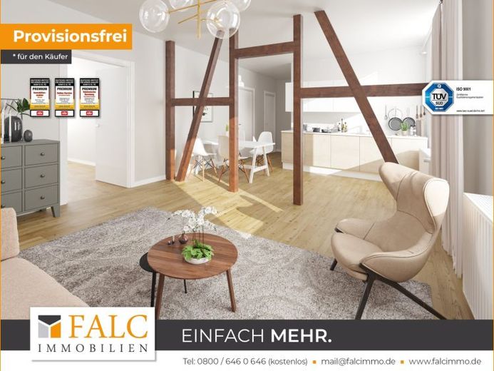 Kommunikativer Mittelpunkt ist der Wohn-/Essbereich mit offener Küche und einer offenen Raumteilung durch die romantischen Holzbalken. Hier trifft der Charme einer gemütlichen Altbau-Wohnung auf die zeitlose Eleganz der Moderne! Große Fenster sorgen für sehr viel Licht. Vom Flur aus gelangen Sie gleich ins Wohnzimmer oder auf der rechten Seite in eines der beiden Schlafzimmer. Das helle Kinderzimmer eignet sich auch ideal als Arbeits- oder Hobbyraum. Ein weiteres Highlight der Wohnung ist das moderne Tageslichtbad mit Badewanne. Hier haben Sie die Möglichkeit, den Arbeitsalltag bei einem schönen Bad und einem Gläschen Ihrer Wahl hinter sich zu lassen.
