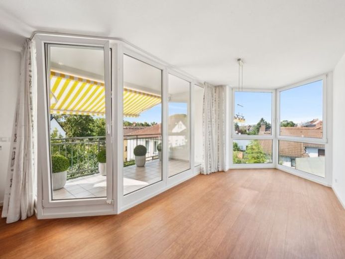 Das Herzstück der Wohnung ist das helle Wohn- und Esszimmer, das durch seine große raumhohe Fensterfront mit Erker und dem Zugang zum Balkon überzeugt. Hier genießen Sie entspannte Stunden im Kreise Ihrer Familie oder gemütliche Abende mit Freunden. Für zusätzlichen Komfort sorgt die elektrische Markise, die auf Knopfdruck angenehmen Schatten spendet und den Balkon in eine kleine Wohlfühloase verwandelt.