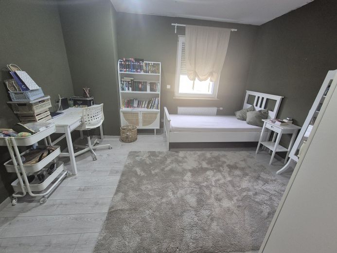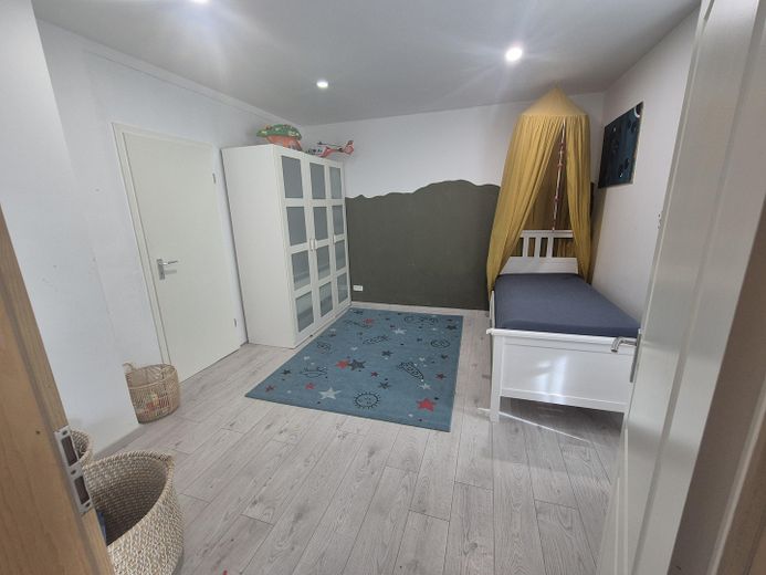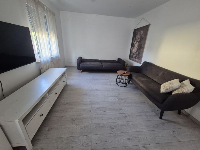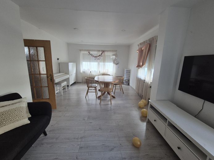 Doppelhaushälfte zu vermieten. Renovierungsbesürftig. Erdgeschoss mit Wohnzimmer, Einbauküche und Gäste-Wc. Erstes Obergeschoss mit 3 Schlafzimmern und Bad. Zweites Obergeschoss mit Schlafzimmer, Bad, Büro und Balkon. Vorne und hinten eigener Hof und Garten.