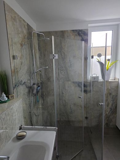 Badezimmer mit bodengleicher Dusche