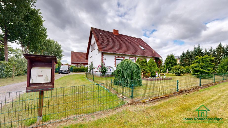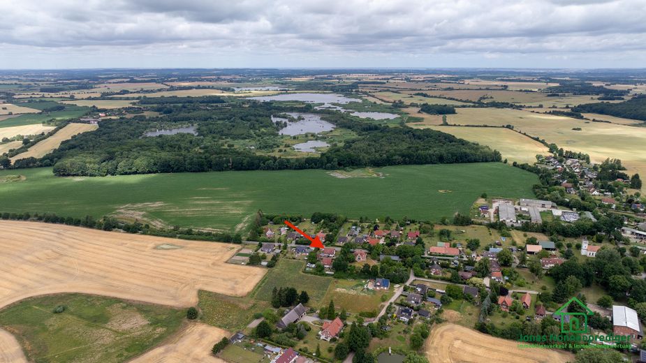 Das Haus befindet sich in der ruhigen Dorfstraße von Zickhusen, umgeben von gepflegten Einfamilienhäusern und Gärten. Die nähere Umgebung ist geprägt von viel Grün und ländlichem Charme – ideal für Familien oder Naturliebhaber. Kindergarten, Schule, Einkaufsmöglichkeiten und ärztliche Versorgung finden sich im Umkreis von etwa 5 bis 15 Kilometern, insbesondere in Lübstorf und Schwerin. Der nächstgelegene Bahnhof ist in Lübstorf und in wenigen Minuten erreichbar.