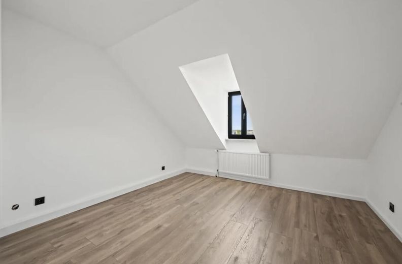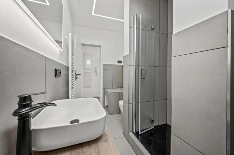 Das Schlafzimmer liegt ruhig im hinteren Bereich und bietet ausreichend Platz für ein großes Bett und Stauraum. Ein weiteres Zimmer kann flexibel genutzt werden – ideal als Kinderzimmer, Büro oder Gästezimmer. Das moderne Tageslichtbad mit Badewanne ergänzt das Gesamtbild perfekt.