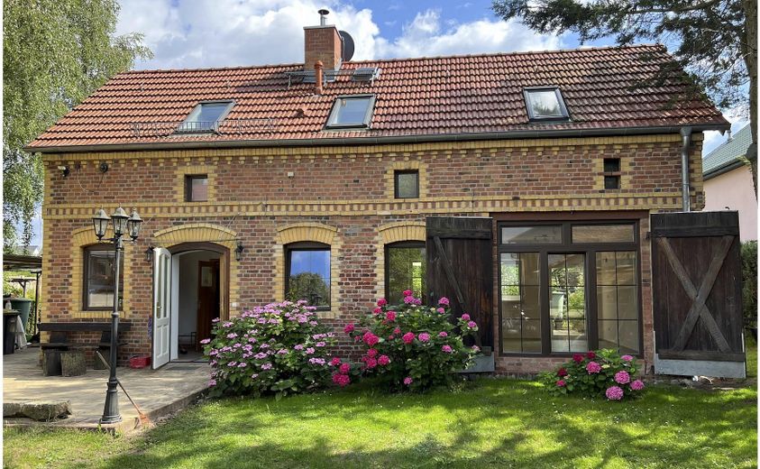 behutsam konservierter, grundsanierter und energetisch auf den neuesten Stand gebrachter historischer Backsteinbau (Drittbezug nach abgeschlossener Sanierung Sept. 2017); neuwertig renoviert im Julli 2025; ursprünglich 1902 als Backhaus erbaut; anmutiges inneres und äußeres Rückzugsambiente, hell, naturnah/ ländlich