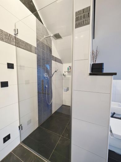 Modernes Bad mit Badewanne und begehbarer Dusche