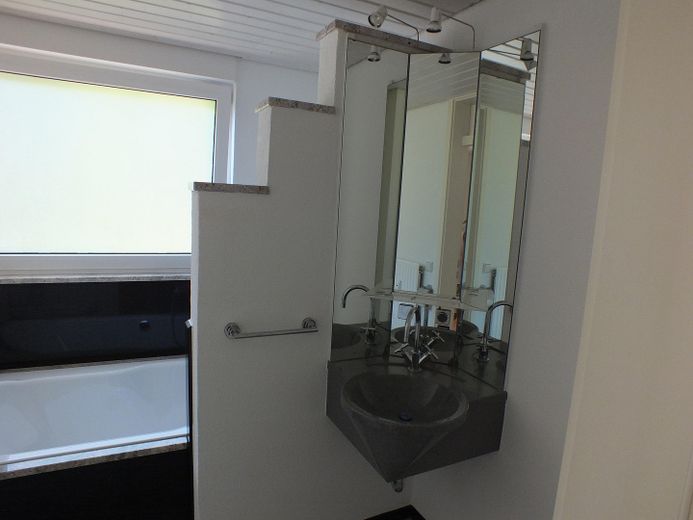 Sie bietet ein großzügiges Raumangebot mi1 1 Badezimmer mit Fenster, Badewanne und WC. Die Gästetoilette verfügt über eine Dusche.