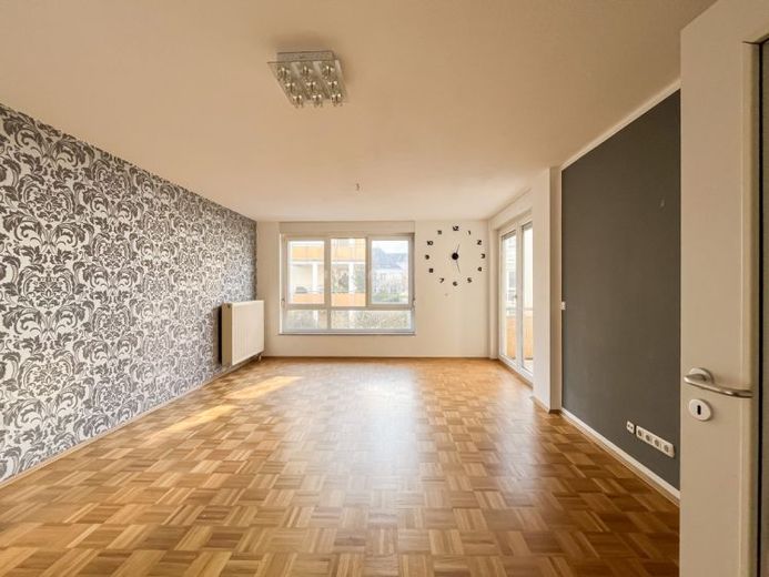 Vom Wohnzimmer geht's direkt auf den großzügigen Balkon. Die Küche verfügt über eine funktionale EBK, und das weiße Tageslichtbad beherbergt sowohl Badewanne als auch Dusche.