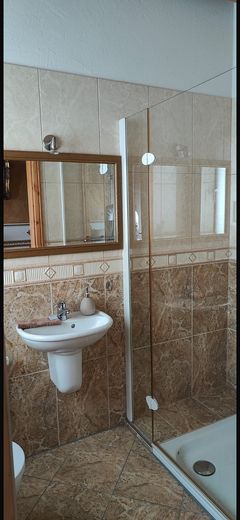 Im Erdgeschoss empfängt Sie ein großzügiger Gästebereich mit separatem Eingang und eigenem WC – ideal für Homeoffice, Praxis oder Gäste. Gleich daneben befindet sich ein modernes Duschbad. Eine gemütliche Küche mit kleinem Essplatz sowie das lichtdurchflutete Wohnzimmer mit Zugang zur Terrasse schaffen den perfekten Rahmen für gesellige Stunden und Familienzeit.