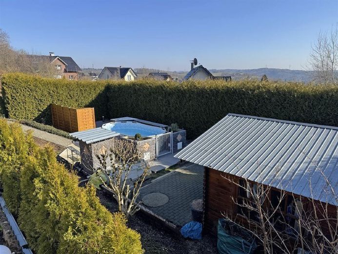 Das sonnige Grundstück ist terrassenförmig angelegt und liebevoll gestaltet: Ob auf der überdachten Terrasse, am sichtgeschützten Liegebereich, im erfrischenden Aufstellpool oder im gepflegten Gartenhaus – hier findet jedes Familienmitglied seinen Lieblingsplatz im Freien.