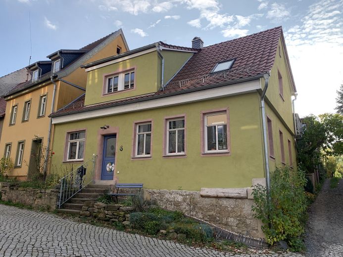 Idyllisches, ökologisch und qualitativ hochwertiges Haus im Stadtkern von Saalfeld mit super Lage sowohl in die Natur als auch zu kulturellem Leben. Es handelt sich um ein kernsaniertes Haus mit vielen liebevollen Details und Bauelementen. Gerade wer auf gesundes Wohnen bedacht ist von wenig Strahlung, Allergiefreundlich oder Klima/Atmen im Haus wichtig ist. Eingebaut wurde komplett neue Elektrik, Heizungsanlage/Heizkörper/Rohre etc, Hausanschluss, Fenster, Fassade, Innenausbau, Fußbodenaufbau mit Dämmung/Fundament neu gegossen, Bäder/Toiletten, Terrasse, neuer Anbau, Neues Dach und Dämmung, Pflaster und Außenanlage, Geländer, Fußböden etc. Daher hat man die nächsten 30 Jahre seine Ruhe, es wurden renommierte, deutsche Firmen ganz klassisch zum Neubau geholt. Ein Gewölbekeller und Dachboden sind vorhanden. Ein Teil des Dachbodens wurde als Gästezimmer ausgebaut, im Keller kann man gut Sachen wie Äpfel lagern. Es gibt einen kleinen Garten, genauso das man Kräuter, Tomaten und Gemüse in Beeten/Hochbeete anbauen kann. Die Terrasse ist mit 25 m² sehr groß und bietet auch Platz für Kräuter. Schön ist, dass man von der Küche direkt auf die Terrasse gehen kann. Ebenso kann man zum zum Feiern den großen Saal nutzen oder diesen für eine Wohn-Ess Küche nutzen, da die Anschlüsse bereits liegen. Parkplatz/Parkplätze kann man von der Stadt anmieten direkt vom Haus oder man geht 5 Minuten zu Fuß für einen freien Parkplatz.