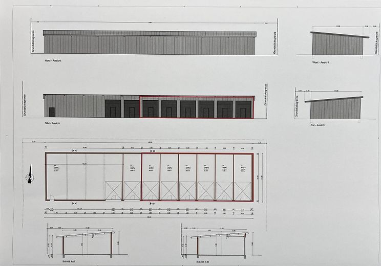 in einer neuen 80 mm starken isolierten Pultdach - Stahlhalle ( Fertigstellung ca. 11-2024 )