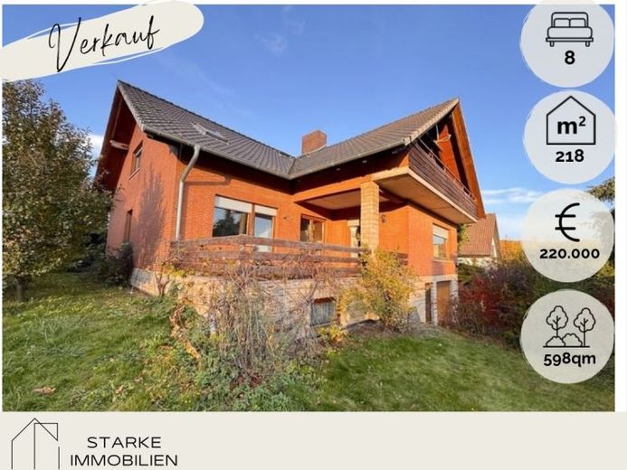 Dieses liebevoll gestaltete Einfamilienhaus aus dem Jahr 1980 besticht durch seine massive Bauweise und bietet auf zwei Etagen eine großzügige Wohnfläche von 218 m² und acht Zimmer. Auf einem idyllischen, 598 m² großen Grundstück am Feldrand gelegen, wartet dieses Anwesen darauf, von neuen Eigentümern entdeckt zu werden, die seinen Charme und seine vielfältigen Möglichkeiten zu schätzen wissen.
