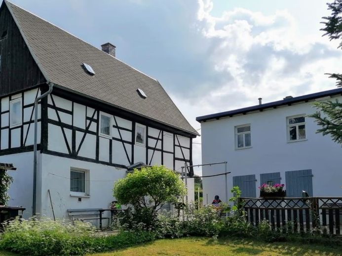Bei dem denkmalgeschützten Fachwerkhaus mit Garage und Nebengebäude, Nebengebäude teilunterkellert, wurden das Dach, die Fassade und der Großteil der Fenster saniert. Die Garage und das Nebengelass wurden komplett beräumt.