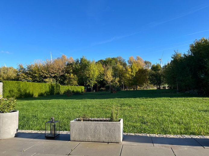 In idyllischer Lage von Uckerfelde, nur einen Katzensprung von Berlin entfernt, präsentiert sich dieses außergewöhnliche Einfamilienhaus als harmonische Verbindung aus modernem Wohnkomfort, nachhaltiger Technik und großzügigem Naturerlebnis. Das im Jahr 2019 errichtete Haus überzeugt mit einer Wohnfläche von ca. 154 m², verteilt auf 5 Zimmer, und befindet sich auf einem beeindruckenden Grundstück von ca. 4.670 m². Bereits beim Betreten wird die hochwertige Bau- und Ausstattungsqualität spürbar. Großzügige, lichtdurchflutete Räume mit einer Raumhöhe von ca. 2,70 m, bodentiefe Fenster sowie edles Eichenparkett in allen Wohnräumen schaffen ein elegantes und zugleich behagliches Wohnambiente. Die exklusive Küche mit separater Speisekammer, freistehender einladender Kochinsel und Tresenbereich bildet das kommunikative Herzstück des Hauses und öffnet sich zum großzügigen Wohnbereich mit großen Hebeschiebefenstern. Ein handwerklich gesetzter Holzgrundofen sorgt für ein langanhaltendes behagliches Wohnraumklima und ergänzt die nachhaltige Heizungsanlage. Die Erdwärmepumpe bietet zusätzlich eine umweltschonende Kühlfunktion für die warmen Sommermonate. Das hochwertig ausgestattete Badezimmer sowie ein zusätzliches Gäste-WC mit Dusche unterstreichen den gehobenen Anspruch dieser Immobilie. Dank durchdachter barrierefreier Bauweise (breite Innentüren, keine Stufen) ist das Haus für alle Altersgruppen optimal geeignet. Ein weiteres Highlight ist die ca. 45 m² große, überdachte Terrasse mit Süd-Ost-Ausrichtung – perfekt für entspannte Abende mit Blick in den opulenten Garten. Das parkähnliche Grundstück begeistert mit altem Obstbaumbestand, mehreren Schuppen, Holzlagerflächen, einem kleinen Waldstück sowie moderner Infrastruktur wie Stromanschlüssen und leistungsstarkem Mähroboter.