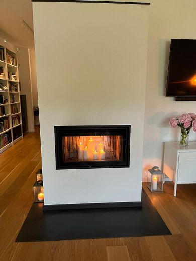 • Zusätzlicher Holzgrundofen mit 17 kW Heizleistung im Wohnbereich