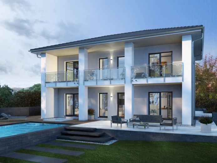 Für alle, die es groß mögen und viel Raum zum Leben und Entspannen suchen, ist die Stadtvilla 15 genau das richtige Objekt. Auf die künftigen Eigenheimbewohner wartet hier eine Grundfläche von mehr als 200 Quadratmetern, verteilt auf zwei Etagen, sowie ein großzügiger, überdachter Balkon, der vor allem in der warmen Jahreszeit dazu einlädt, die Seele baumeln zu lassen. Auch das Innere der Villa kann sich sehen lassen: Wohn- und Ess-Kochbereich sind optisch durch eine Treppe voneinander getrennt und erstrecken sich insgesamt über eine Fläche von fast 50 Quadratmetern. Außerdem Parterre: eine sich an die Küche anschließende Speisekammer, Hauswirtschaftsraum sowie Gäste-WC. In der oberen Etage gelangen die künftigen Eigenheimbesitzer von der großen Galerie in die beiden Kinderschlafzimmer, den Elternbereich, das Badezimmer sowie auf den großen Balkon. Auch zwei weitere Zimmer ermöglichen den direkten Zugang nach draußen.