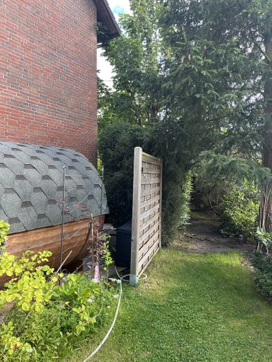 Der Garten verfügt seit 2021 über eine Fass-Sauna und eine Gartendusche. Zur Bewässerung kann Wasser aus einem Regenwasserschacht im Garten genutzt werden. Der Keller besteht aus einer Betonwanne und ist vollständig wasserdicht. Weitere Abstellflächen befinden sich auf dem Dachboden über dem ausgebauten Dachgeschoss, der jedoch nicht gedämmt ist. Im gesamten Haus wurden Laminat, Vinylboden in Holzoptik oder Fliesen verlegt. Die Terrasse ist mit Holzfliesen gestaltet und lädt zu erholsamen Stunden im Freien ein.