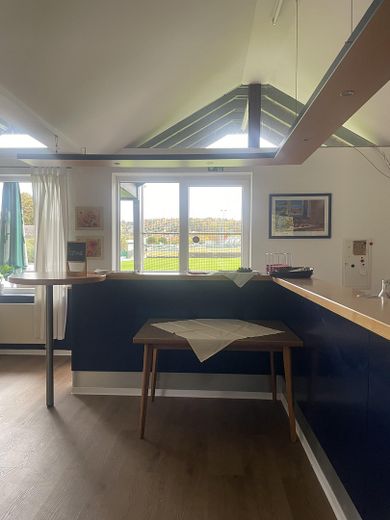 einen großzügigen, hellen Gastraum mit Thekenbereich,